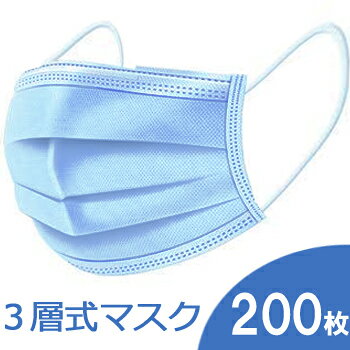 ★ 送料無料! マスク 使い捨てマスク 不織布 3層式 200枚セット ライトブルー 【5月中旬〜下旬出荷分予約開始】